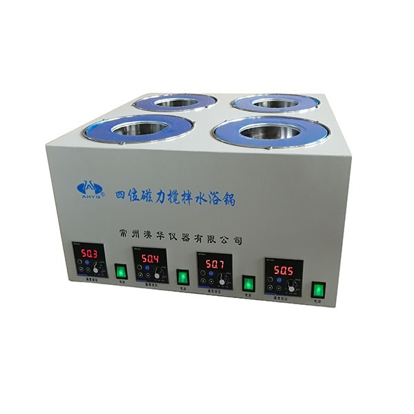 四位磁力攪拌數(shù)顯恒溫水浴鍋是本公司新研發(fā)的一款實驗室儀器,它可同時放置4個容器做試驗,4個位可單獨控制,可同時使用,也可單獨使用,該儀器采用直流電機,噪聲低、調(diào)速平穩(wěn)、使用壽命長。不銹鋼內(nèi)膽耐腐蝕、易清洗。由聚四氟乙烯與優(yōu)質(zhì)磁鋼精制而成的攪拌子,耐高溫、耐磨、耐化學(xué)腐蝕、旋轉(zhuǎn)力強、并可在密閉的容器中進行混勻工作,微電腦蕊片控溫,精確度高,LED顯示直觀。
